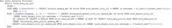 行级访问控制策略可以绑定用户和角色(rolename),显式拆分省级和市级的用户组替换case when语句,市级的所有用户添加到市级用户组,省级用户添加到省级用户组,例如create row level security POLICY auth_hxzg_sb_zys on kf_bz.hxzg_sb_zys to rolename,在安全策略中指定rolename,并创建两个行级访问策略,一个策略针对省级用户组生效,另一个策略对市级用户组生效。(例如省级role_sj_root,市级role_ds_root),分别对省级和市级两类用户设置行级访问控制)。