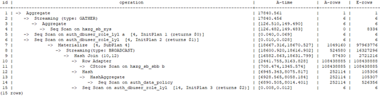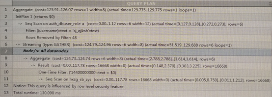在一些局点的交付过程中,ISV需要使用行级访问策略进行用户访问权限控制,省级用户具有全部查询权限,部分市级用户设置行级访问权限。如果行级访问控制使用不好,会导致影响整体查询的执行效率,例如在业务系统建表的过程中,创建1个行级访问策略并增加case when条件,根据登录用户名(current_user)判断用户属性(省级用户还是市级用户),并进行访问控制,实际测试过程中省级用户查询执行耗时17秒,不符合预期,需要进行优化。
