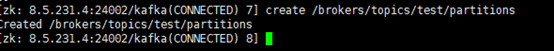 - Zookeeper上的分区数创建不完整:按照1.2章节登录zkCli后执行命令: