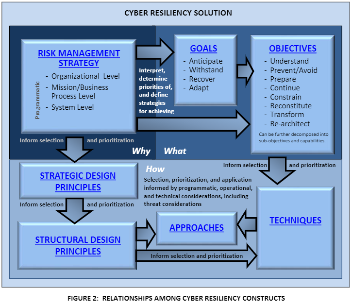 - 文档将4个目标细化成了8个系统应该实现的功能:理解、阻止/避免、准备、持续、限制、重组、转移、重新架构;