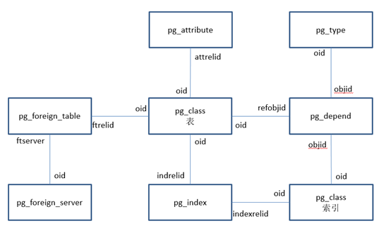 在执行DDL操作时,会将表的元信息记录在系统表中,例如,执行一个简单的create table test(a int,b int)操作,会在pg_class中新增一条数据来记录表信息,在pg_type中新增一条数据来记录与这张表对应的存储数据类型,在pg_depend中新增一条数据来记录pg_class中的数据和pg_type中的数据之间的依赖关系,在pg_attribute中新增九条数据来记录字段a、字段b以及表的7个默认隐藏字段。
