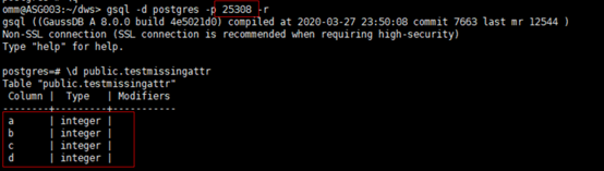(由于pg_attribute中一张表的attnum一定是连续的,因此根据上图可以快速判断是pg_attribute中缺少记录,但是如果上图存在的两条记录attnum为1,2而不是2,4,就要根据其他cn或dn的表定义来进行判断)