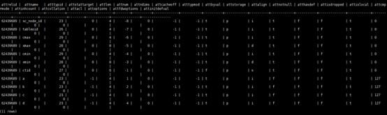 insert into pg_attribute values (62439689,'a',23,-1,4,1,0,-1,-1,'t','p','i','f','f','f','t',127,0,0,NULL,NULL,NULL,NULL);