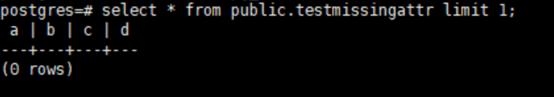 delete from pg_attribute where attrelid = (select oid from pg_class where relname = 'testmissingattr' and relnamespace = (select oid from pg_namespace where nspname = 'public')) and attname = 'a';