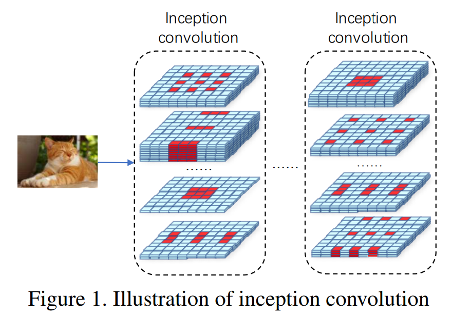 本文提出一种膨胀卷积的变体,Inception卷积,他包含多种膨胀模式如下图: