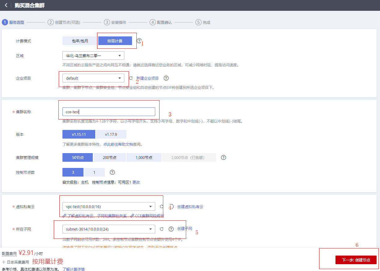 2.1 CCE(云容器引擎)实例申请