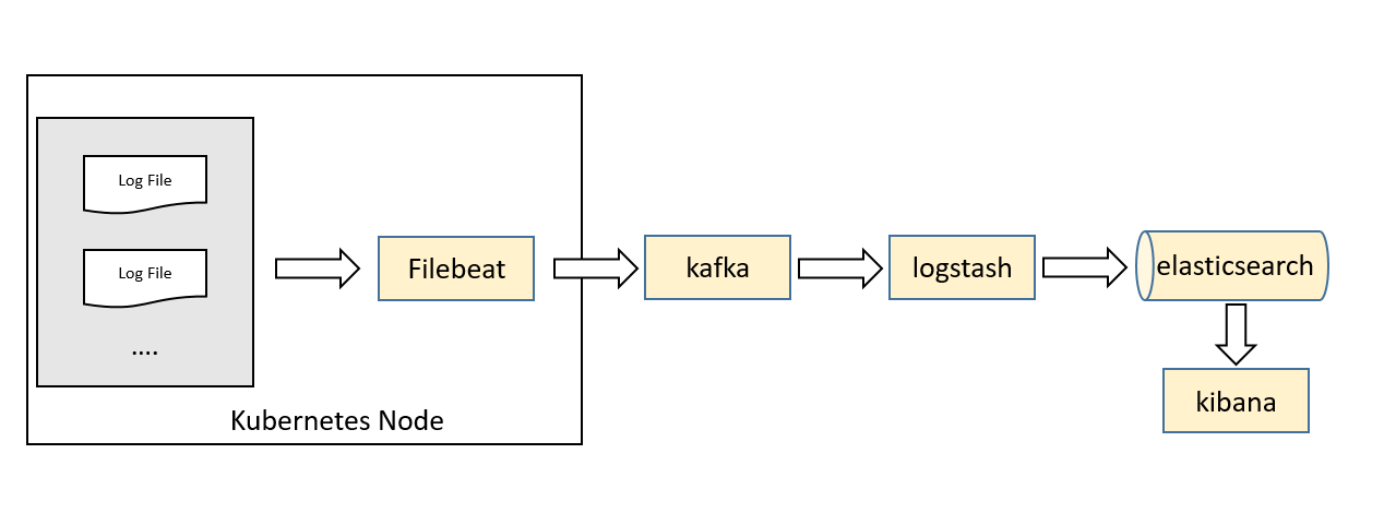 整体日志采集pipeline如下图所示。kubernetes支持两种部署模式:Deployment模式及Daemonset模式。本文使用DaemonSet的方式对每个k8snode部署日志监控收集程序loggingagent(filebeat),并将监控日志实时存储至高性能消息队列kafka。然后使用logstash对kafka日志消息进行消费,同步信息至ES。对于用户可以通过kibana可视化的方式进行数据查询。特别的,考虑到filebeat与k8s兼容的api访问能力,在部署过程中注意需要指定filebeat用户认证。