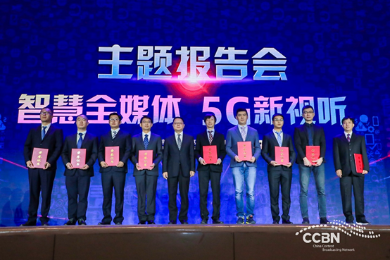 右二:芒果无际科技有限公司(5G高新视频多场景应用国家广电总局重点实验室)产品负责人王学哲上台领奖