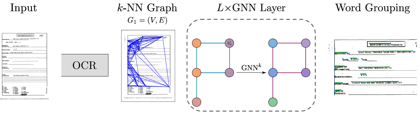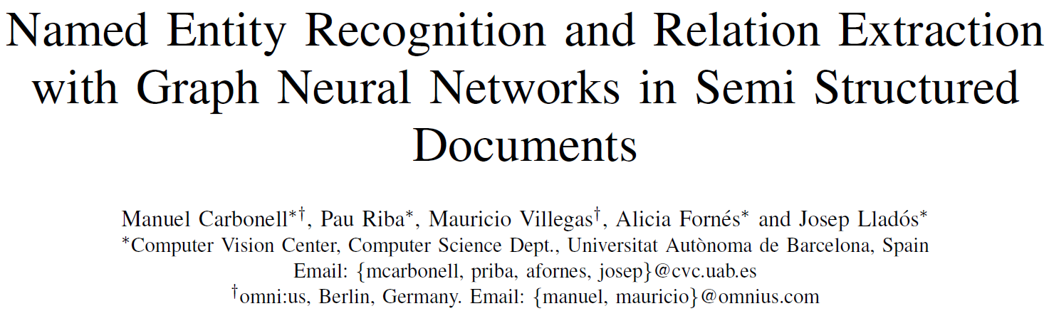 随着用于传递和记录业务信息的管理文档的广泛使用,能够鲁棒且高效地从这些文档中自动提取和理解内容的方法成为一个迫切的需求。此外,基于图的表达方法对不同文档模版的变化具有灵活的适应性,从而使得图表达方式与这些管理文档的半结构化特性非常契合。正因为图神经网络(GNN)能够很好地学习出文档中数据元素间的关系,所以本次解读的文章提出利用图神经网络来解决半结构化文档中的实体识别(NER)和关系提取问题。经实验验证该文章提出的方法在单词分组、实体分类、关系预测三个任务上取得了SOTA结果,同时在FUNSD(表单理解)和IEHHR(手写婚姻档案理解)两个完全不同类别的数据集上取得的实验结果进一步验证了本次解读文章所提出的方法的泛化性。