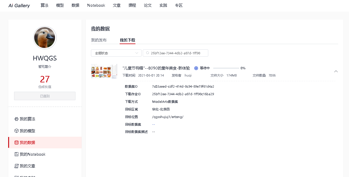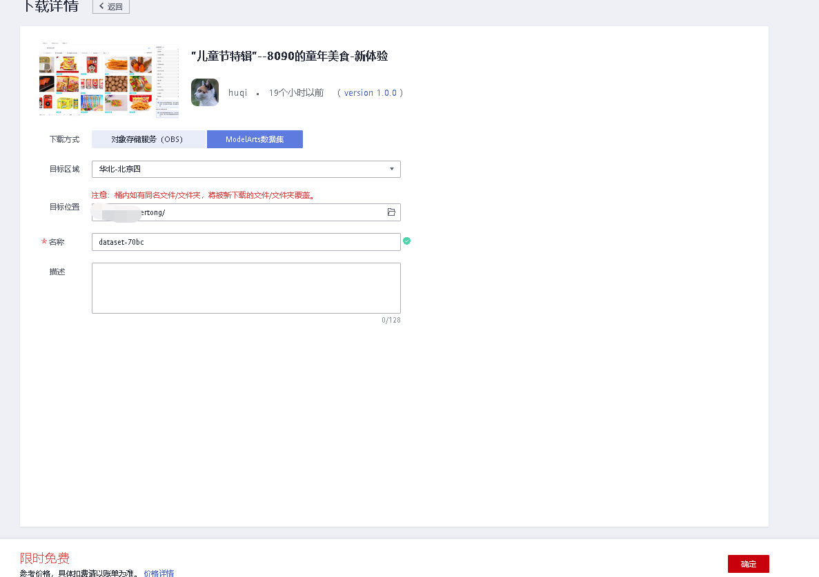 点击下载数据集到OBS