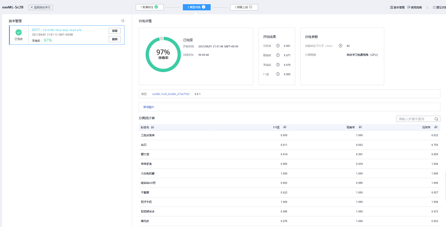 训练完成。部署