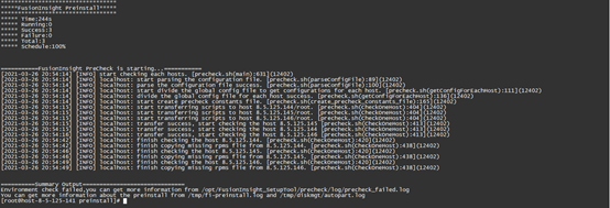 Precheck则是对于Preinstall执行之后结果进行的检查操作,主要检查各个节点的磁盘配置是否成功分区并正确挂载。一般情况下preinstall之后会自动进行precheck。根据执行结果进行处理。