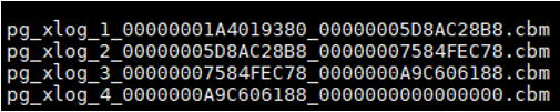 cbm文件保存在data目录的pg_cbm文件夹下,命名方式为:pg_xlog_seqnum_startlsn_endlsn.cbm。