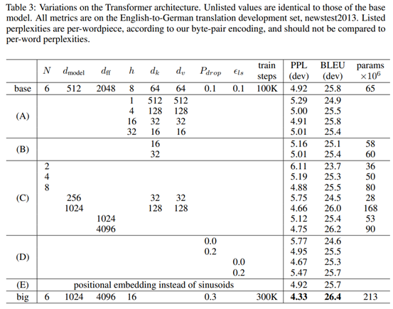除核心的Multi-Head Attention操作外,作者还采用了位置编码、残差连接、层归一化、dropout等操作将输入、注意力、多层感知机连接起来,从而构成了完整的Transformer模型。通过修改encoder和decoder中堆叠的基本模块数量、多层感知机节点数、Multi-Head Attention中的head数量等参数,即可得到BERT、GPT-3等不同的模型结构。