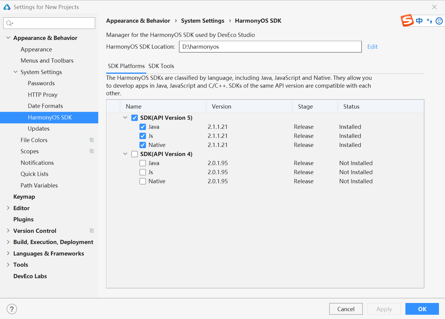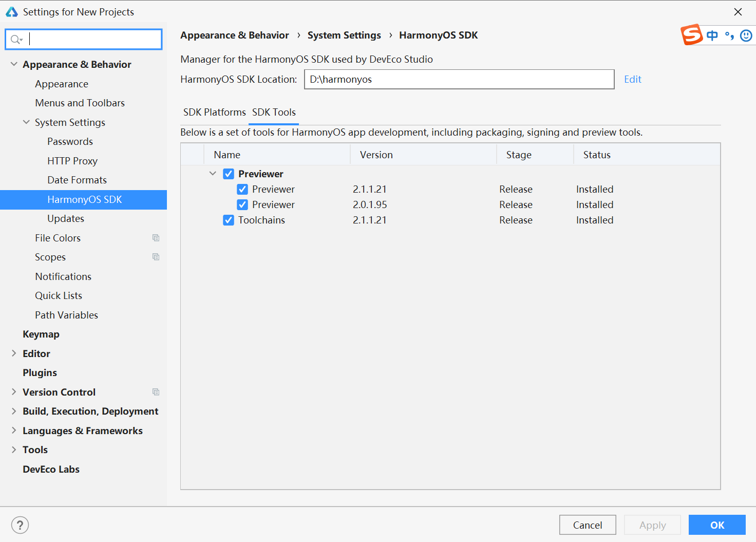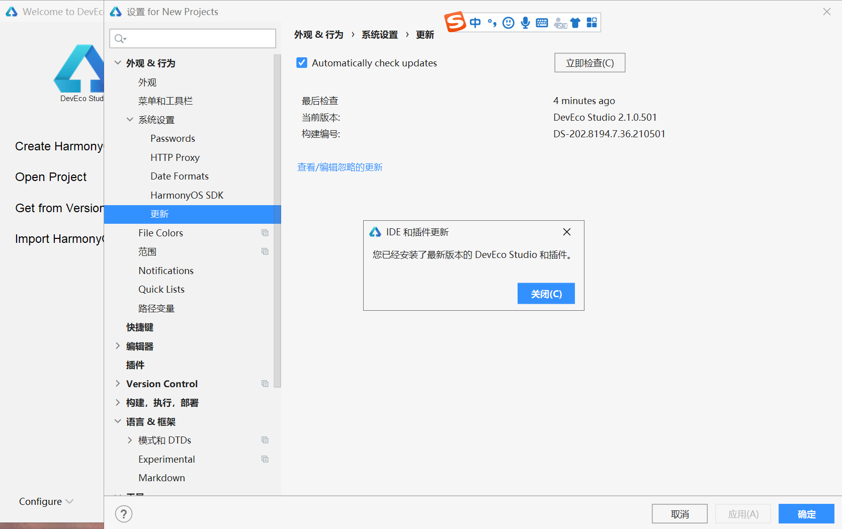 安装体验鸿蒙Harmony OS开发工具HUAWEI DevEco Studio 2.1和汉化