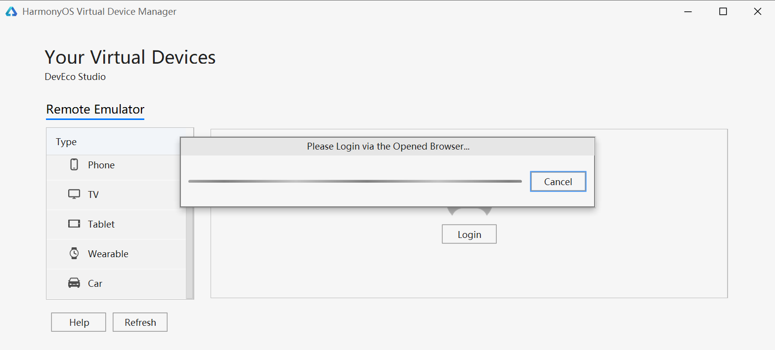 - 点击菜单栏的Tools > Device Manager,在Local Emulator页签中,点击右下角的New Emulator按钮,创建一个本地模拟器。