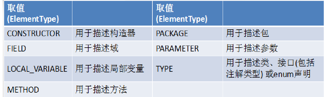 ElementType.TYPE_USE 表示该注解能写在使用类型的任何语句中。