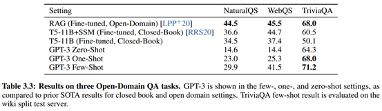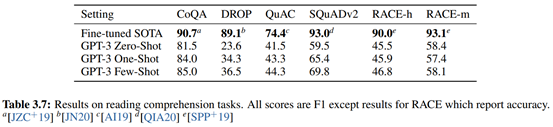 从上面的结果可以看出,GPT-3模型虽然在很多任务上达到了当前业界最好的效果,或者接近当前业界最好的结果,但是在很多任务上的精度仍然与当前业界最好的效果存在较大的差距。特别是回答问题、常识推理、阅读理解这些相对复杂的任务,目前的大模型还是无法很好的解决。