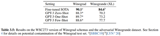 (4)Winograd Schemas Challenge(判断句子中代词指代的对象,指标越高越好):