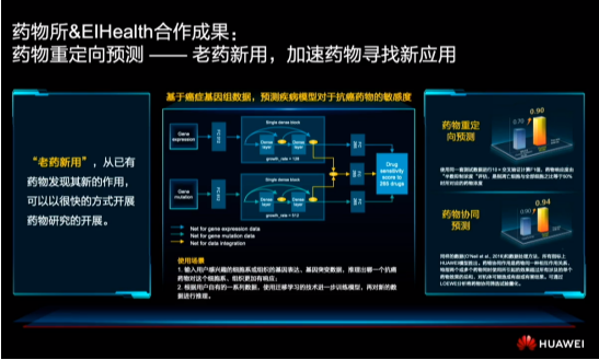 因为药物研发的周期长,投入高,如果研发后期失败代价非常大。那有一个最高效的方法就是老药新用,也叫药物重定向,去发现老药新的适应症,新的应用。因为已经上市的药物一定已经通过了副作用、安全性的评估,在此基础上去继续开发会大大加快药物研发进程。比较著名的例子比如沙利度胺用于多发性骨髓瘤的治疗。我们利用癌症基因组数据预测抗癌药物的敏感度和协同作用,我们的AI算法显著优于原有方法。