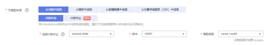 选择“从训练中选择”-“训练作业”后就能根据已经训练好的训练作业来导入模型。