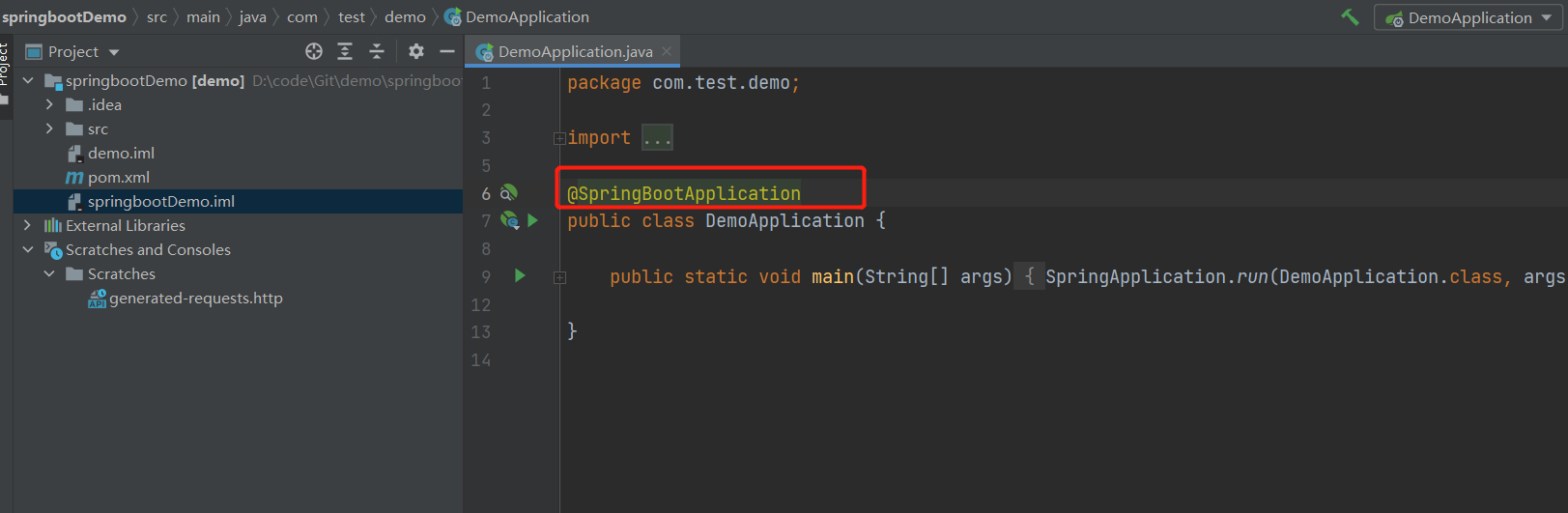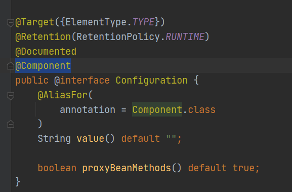 其中@springBootApplication注解的是标记主启动项,可以看出底层还是spring的@component组件进行注解的。