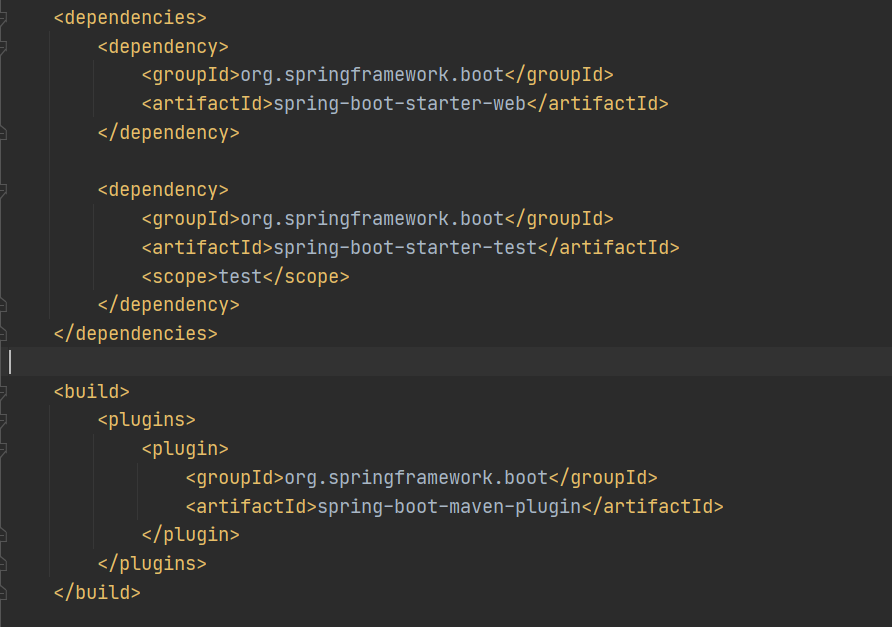 pom.xml依赖配置文件中首先能够看到的是<parent></parent>父依赖,里面集成了一系列第三方类库包括内嵌的tomcat容器,disparcherServlet控制、xml整合等默认配置的处理,其中spring-boot-dependencies是对核心依赖的版本控制,因此依赖中可以不用写版本号,还有资源过滤控制等,group、artifactId和version组成了项目的专属坐标,dependencies中就是项目所需的依赖管理,比如spring-boot-starter-web是web项目的核心依赖,spring-boot-starter-test是测试类的核心依赖等,plugins是插件的管理部分比如打包插件spring-boot-maven-plugin。。。