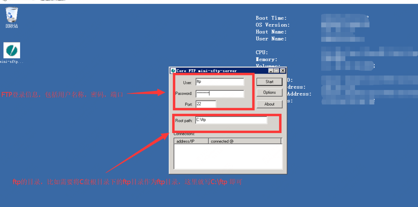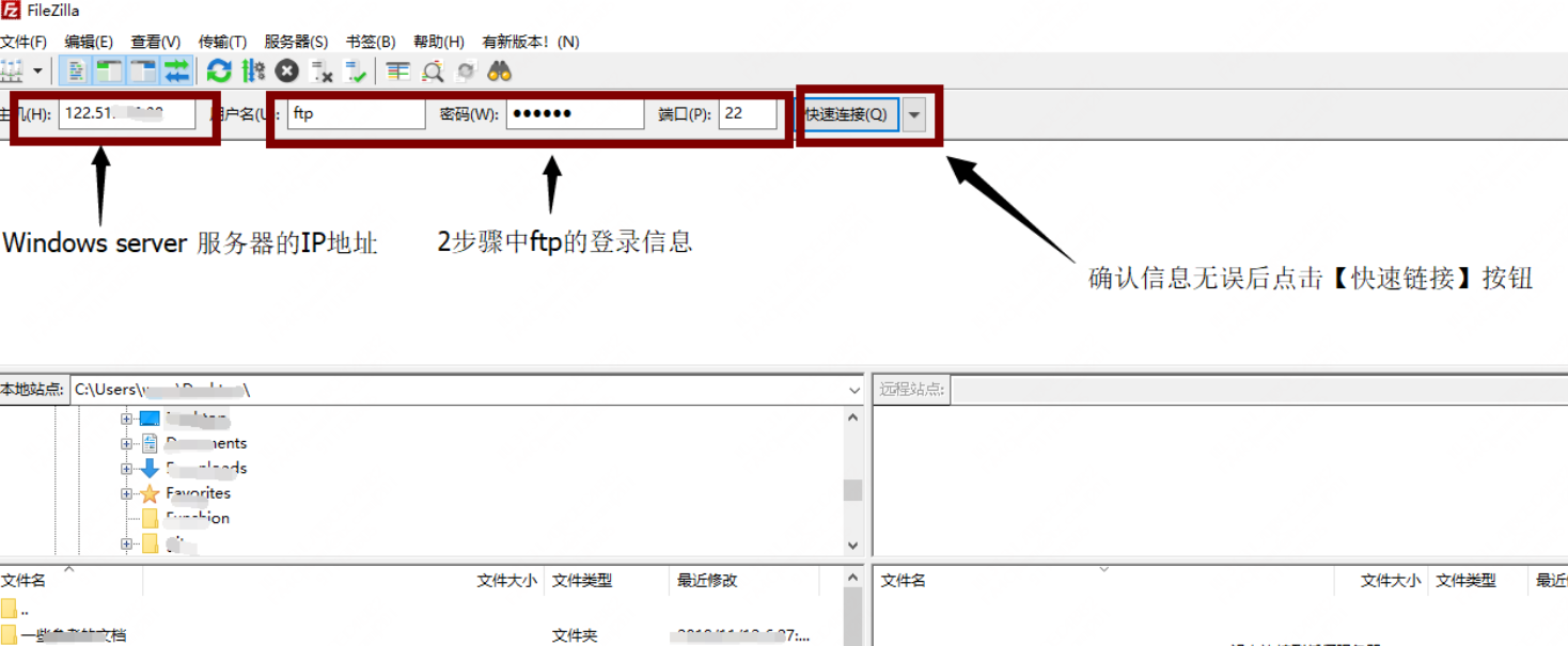 4、使用3步骤中的软件,2步骤中的登录信息登录到ftp服务。