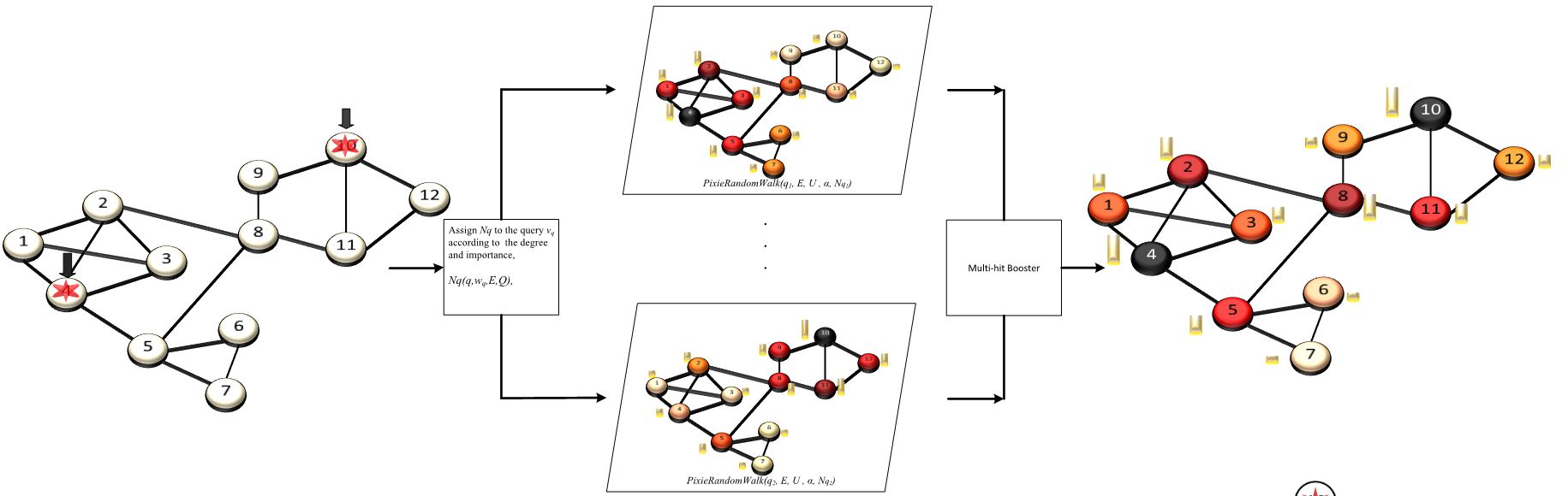 另一大“功臣”是GES所拥有的图场景和图优化算法, 以其中的Pixie算法为例,Pixie是华为云尝试将多元数据构建到同一张图,并在这个异构图上配置相应的schema、点边属性、权重而设计的算法。它是一种全新的实时推荐算法,克服了异构图的数据获取和融合问题,支持多请求节点下综合推荐,能满足各种复合型、时变、多样性推荐场景需求。