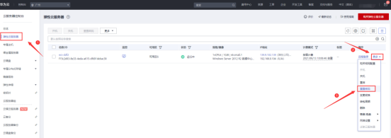 2,找到弹性云服务器,在弹性云服务器选择“操作”列下的“更多 > 重置密码”。