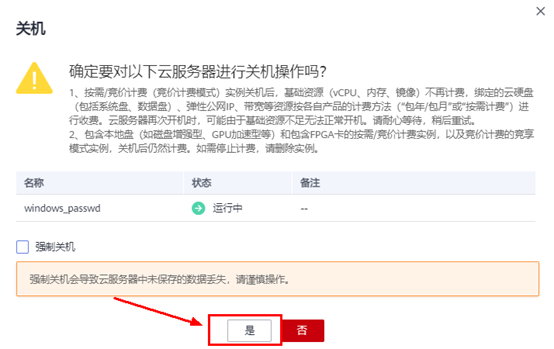 【摘要】 【准备条件】准备一台Linux操作系统的临时弹性云服务器(按需计费),建议操作系统为Ubuntu18.04版本,且该临时弹性云服务器与待重置密码的弹性云服务器位于同一个可用区【操作步骤】1,购买与故障机器同一个可用区的按需Linux云服务器,配置为ubuntu18.04,其他配置默认即可,密码需要输入自定义密码,稍后会登陆机器。2,购买完成返回机器列表:3,将故障的windows云服务器关机...