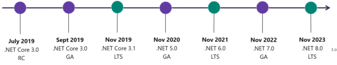 LTD(Long Term Support,长期支持版),之后 .NET Core将更名NET,固定每年释出新版,并定义双数版号为LTS版,单数版号为 Current版