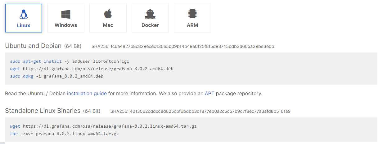 https://grafana.com/grafana/download?platform=linux下载对应操作系统的程序文件。