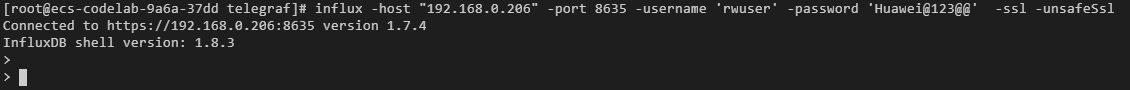 cd <Influxdb-1.8.3_windows_amd64.zip解压后的目录> #注:尖括号不是命令的一部分 influx.exe -host <ip> -port <port> -username <userName> -password <password> -ssl -unsafeSslip:数据库服务器的地址