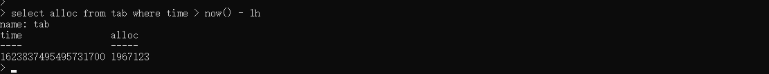 insert tab,os="ubuntu16.10",hostname="192.168.1.2:8188" alloc=1967123,frees=65440812查询一小时前的所有数据