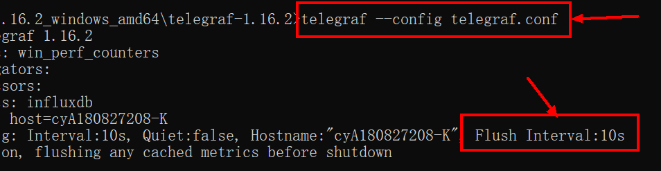 CMD中运行命令启动telegraf开始采集数据。