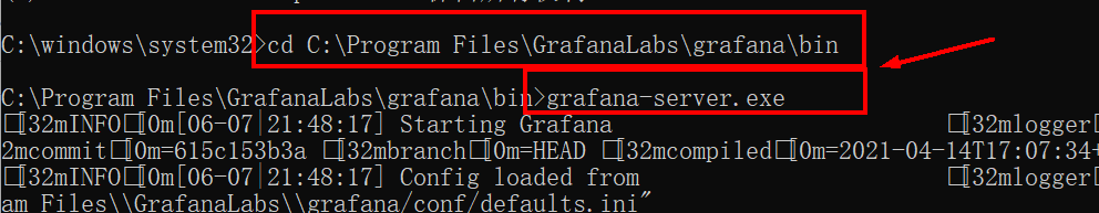 打开CMD,cd 进入Grafana目录