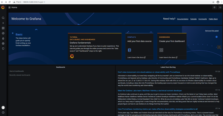 服务端启动Grafana后,通过浏览器访问:
