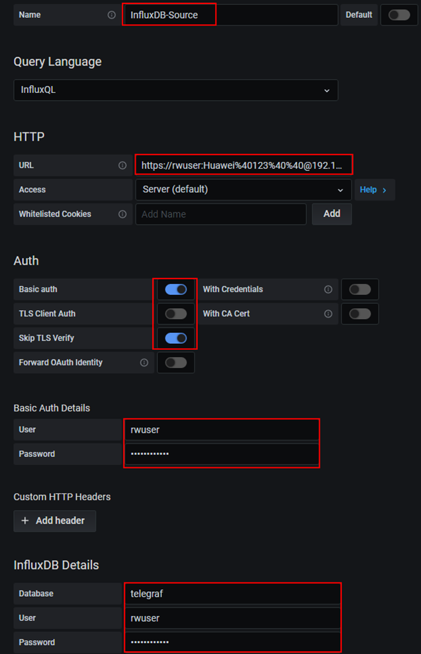 - 数据源名称:InfluxDB-DataSource