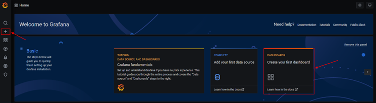 点击首页DASHBOARDS创建看板,或者侧边“+”快捷按钮。