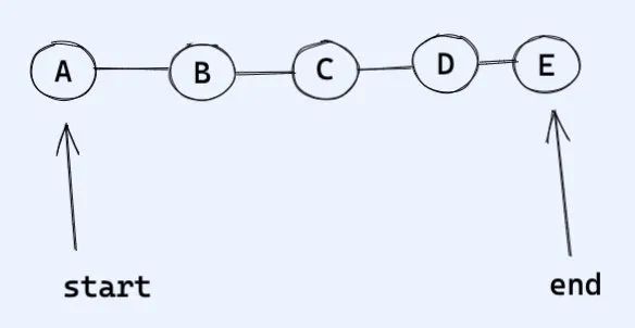 让我们继续回到这道题。为了能够判断两者是否交汇,我们可以使用两个 hashSet 分别存储起点集合终点集。当一个节点既出现起点集又出现在终点集,那就说明出现了交汇。