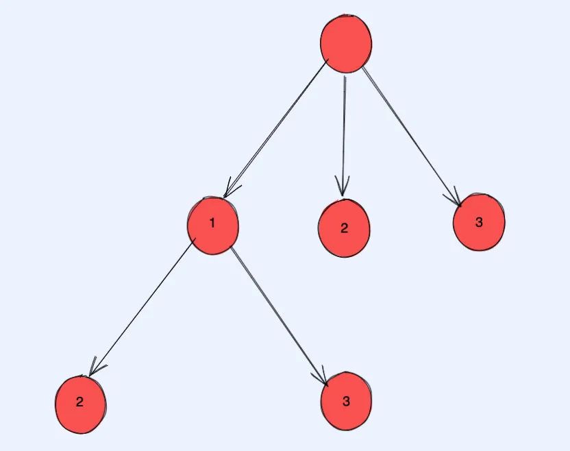 (下图描述的是对一个长度为 3 的数组进行决策的部分过程,树节点中的数字表示索引。即确定第一个数有三个选择,确定第二个数会根据上次的选择变为剩下的两个选择)
