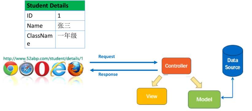 • controller ():http, ,(控制器):处理Http请求,调用模型,请选择一个视图来呈现该模型。