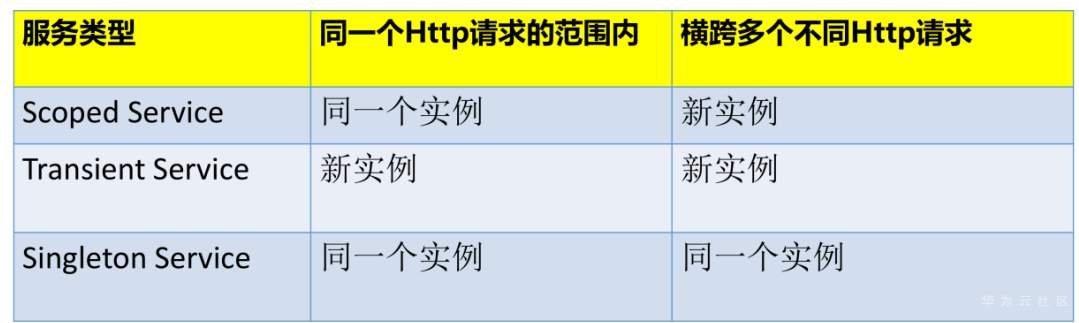 - 对于 Transient http瞬时服务)服务,每次请求实例时都会提供一个新实例,无论它是否在同一http的范围内请求或跨越不同的http请求