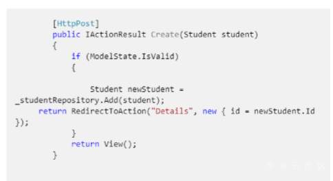 public IActionResult Create(Student student)