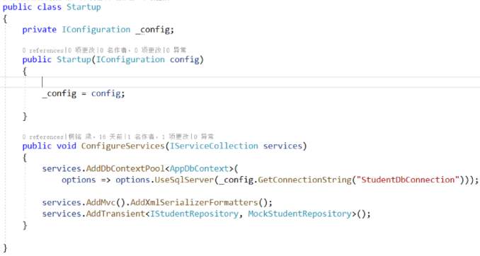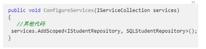 它可以让AP. NET Core在请求**IStudentRe**实例时提供**SQLStudentRepository**类的实例。
