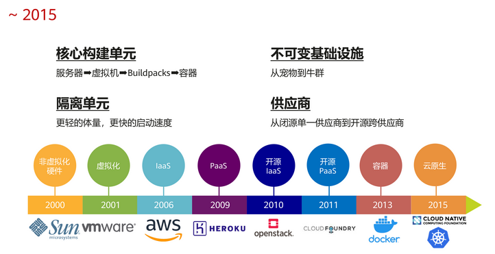 云原生其实不是一个太新的概念,更多是在云计算的发展历程对于理念的更新和延伸。上图看到的更多是云计算发展的一个历程