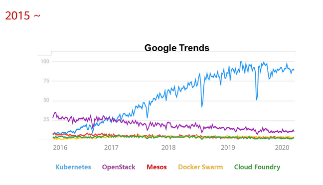 Kubernetes采用情况(2018-2020年) Kubernetes 无处不在:Kubernetes 的生产使用比例已从去年的72%增长到了82%。