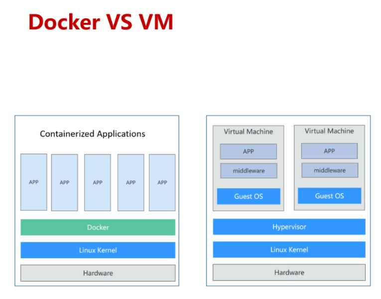 6.交付、部署:虚拟机可以通过镜像实现环境交付的一致性,但镜像分发无法体系化; Docker在Dockerfile中记录了容器构建过程,可在集群中实现快速分发和快速部署;
