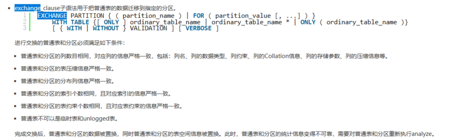 alter table tab_partition exchange partition (p201901_r02) with table tab_tmp;